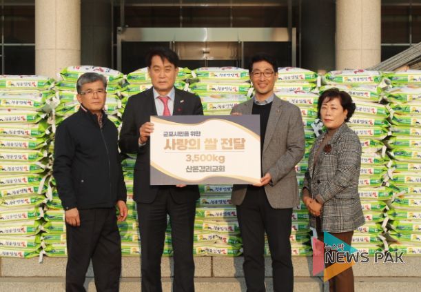 뉴스팍 진금하 기자 | 산본감리교회는 11월 24일 쌀 10kg 350포를 군포시에 기탁했다.