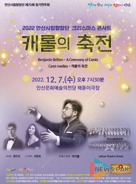 뉴스팍 진금하 기자 | 안산시는 다음달 7일 오후 7시 30분 안산문화예술의전당 해돋이극장에서 안산시립합창단 제70회 정기연주회‘캐롤의 축전’이 열린다고 29일 밝혔다.