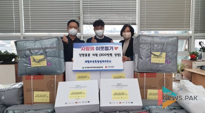 이번 난방용품 지원은 ‘세형토목측량설계사무소’의 후원으로 이뤄졌다.