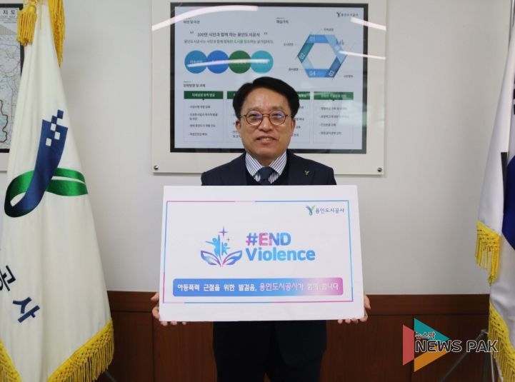 뉴스팍 진금하 기자 | 용인도시공사 최찬용 사장은 2일 아동폭력 근절을 위한 ‘#END Violence’릴레이 캠페인에 동참했다고 밝혔다.