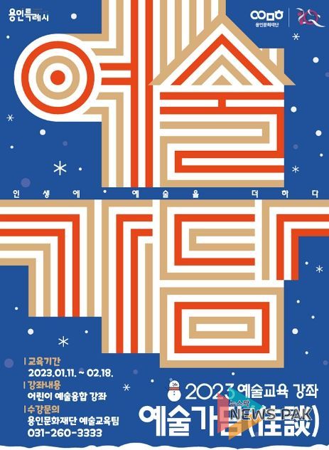뉴스팍 진금하 기자 | (재)용인문화재단은 2023 예술가담 겨울 특강의 어린이 예술융합 강좌 수강생을 12일 오후 2시부터 모집한다.