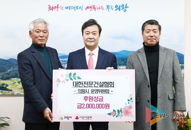 뉴스팍 진금하 기자 | 의왕시는 13일, 대한전문건설협회 의왕시 운영위원회에서 저소득층을 지원해달라며 200만원을 기부했다고 밝혔다.