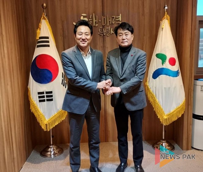 뉴스팍 진금하 기자 | 하은호 군포시장이 19일 서울시청에서 오세훈 시장을 만나 군포시 관내에 있는 서울시 남부기술교육원 부지 관련 상생협력방안을 협의했다.