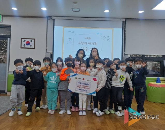 뉴스팍 진금하 기자 | 내손1동 국공립 갈미어린이집은 21일 ‘제5회 사랑의 바자회’수익금 2,157,500원을 관내 어려운 이웃을 돕는데 사용해 달라며 내손1동주민센터에 기부했다.