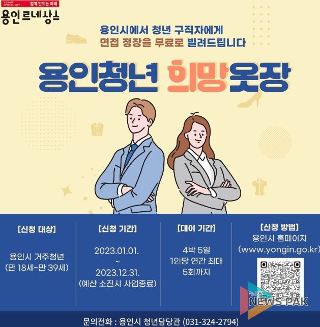 뉴스팍 진금하 기자 | 용인특례시는 2023년도 용인청년 희망옷장 서비스를 위해 올해보다 17% 늘어난 4800만원 예산을 확보했다고 26일 밝혔다.