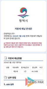 평택시, 모바일 메신저 통해 지방세 체납안내문 발송
