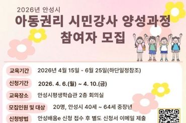 안성시, 중장년 대상 '아동권리 시민강사 양성과정' 참여자 모집