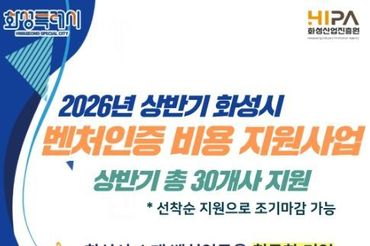 “벤처기업 전환하고 인증 수수료 지원받으세요”, 화성산업진흥원 인증 비용 지원사업 개시