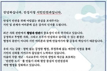 "안성시, '청렴한 안전점검' 으로 시민 청렴의식 제고 추진"