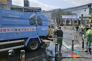 수원시 팔달구, 수원역 일대를 "봄비처럼 말끔하게" 새봄맞이 물청소