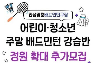 안성시시설관리공단,'어린이・청소년 주말 배드민턴 강습반' 추가 모집