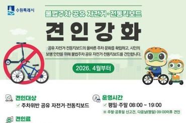수원특례시, 공유 전동킥보드(PM)·자전거 불법주차 신고시스템 강화