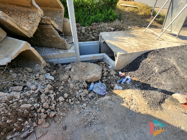뉴스팍 배상미 기자 | 화성시가 상신지하차도 일원 고가하부 배수로 정비사업 공사를 하면서 발생한 건설폐기물들을 공사가 완료한 후에도 수거 및 폐기처리 하지 않고 무단으로 도로옆에 방치하고 있어 도로를 이용하는 차량과 시민들의 안전에 위협을 초래하고 있다.