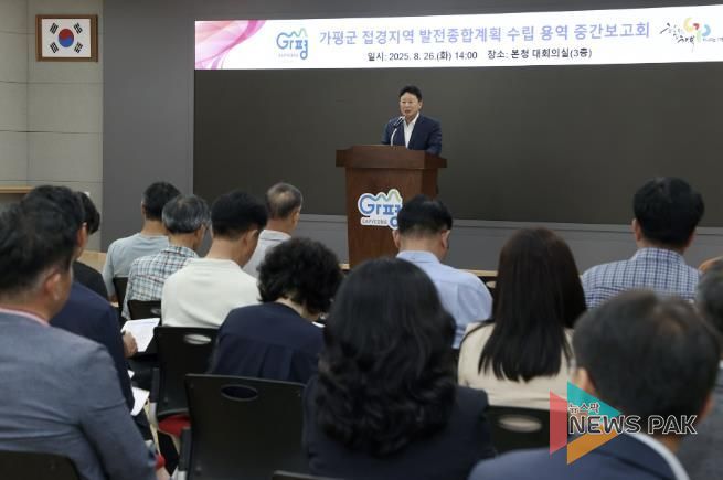 뉴스팍 배상미 기자 | 가평군이 26일 '가평군 접경지역 발전종합계획 수립 용역' 중간보고회를 열고 추진 현황과 전략사업(안)을 공유했다.