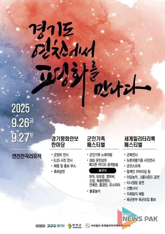 뉴스팍 배상미 기자 | 경기도는 9월 26일과 27일 이틀간 연천군 전곡리유적에서 ‘2025년 경기 평화안보 한마당’을 개최한다. ‘연천 군인가족 페스티벌’과 함께 진행될 예정인 이날 행사는 도민과 군인가족이 함께 평화와 안보의 가치를 공유하는 소통과 화합의 장으로 마련했다.
