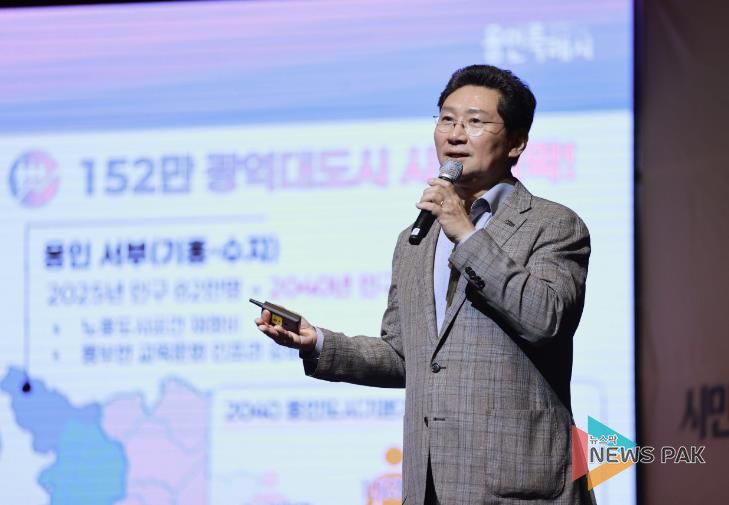 뉴스팍 배상미 기자 | 이상일 용인특례시장은 22일 오후 수지구 평생학습관 큰어울마당에서 열린 ‘2025년 수지구 시민과의 대화’에서 300여 명의 구민들과 약 3시간 10분 동안 대화하는 시간을 가졌다.