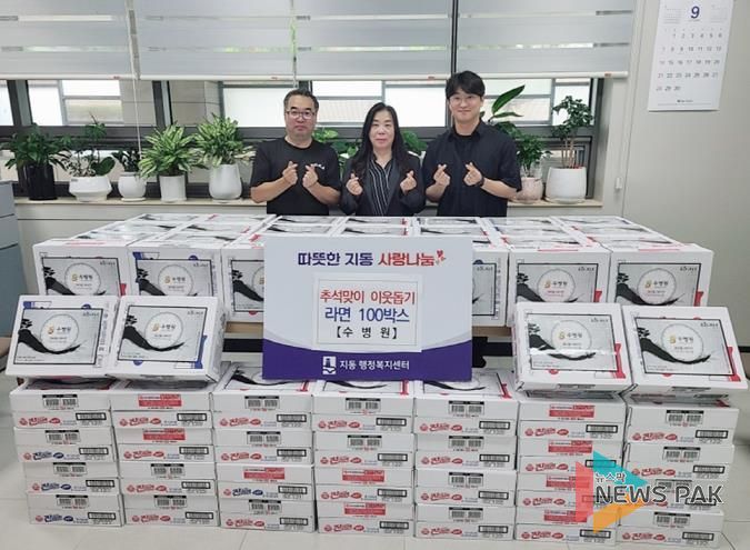 뉴스팍 배상미 기자 | 지난 22일, 수원시 팔달구 지동 소재 수병원은 추석 명절을 맞아 지역사회 취약계층을 위해 라면(20개입) 100박스를 지동 행정복지센터에 전달했다.