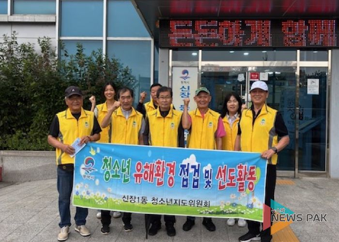 뉴스팍 이소율 기자 | 평택시 신장1동 청소년지도위원회는 지난 19일 신장쇼핑몰 일대에서 ‘청소년 유해환경 점검 및 단속 활동’을 실시했다.