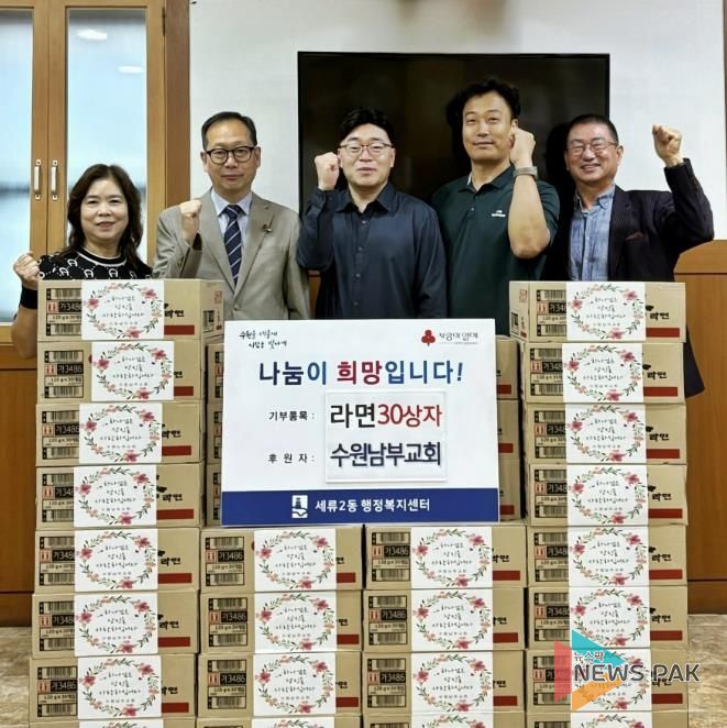 뉴스팍 배상미 기자 | 수원시 권선구 세류2동 소재 수원남부교회는 지난 23일, 지역 내 취약계층을 위해 라면 30상자를 세류2동 행정복지센터에 기부했다.