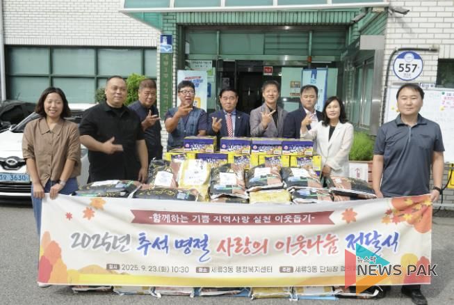 뉴스팍 배상미 기자 | 수원시 권선구 세류3동 행정복지센터는 지난 23일 단체장협의회와 함께 다가오는 추석 명절을 맞이하여‘추석 명절 사랑의 이웃나눔 전달식’을 개최했다.