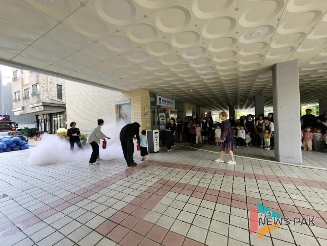 뉴스팍 배상미 기자 | 지난 9월 23일, 수원시 영통구 광교2동 행정복지센터에서는 동 직원과 이의119안전센터, 시립광교2동어린이집, 지역 주민들이 함께 참여한 가운데 합동소방훈련을 실시했다.