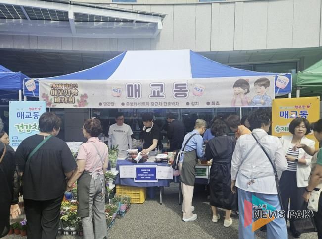 뉴스팍 배상미 기자 | 수원시 팔달구 매교동 지역사회보장협의체는 지난 23일 수원시 팔달구청 앞마당에서 진행한 ‘팔달구 이웃사랑 바자회’에 참여했다.