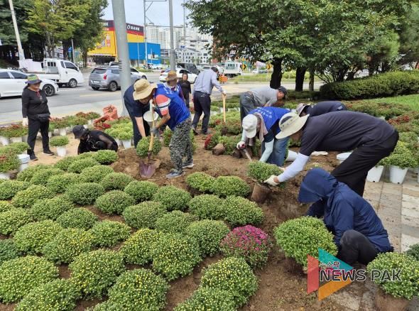 뉴스팍 이소율 기자 | 평택시 세교동 행정복지센터는 23일 시원한 가을날을 맞이하여 세교동 단체 및 주민들과 함께 국화꽃을 심었다고 밝혔다.