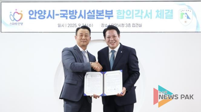뉴스팍 배상미 기자 | 안양시가 국방시설본부와 박달스마트시티 조성사업(안양 50탄약대대 이전사업)을 위한 합의각서를 24일 체결했다.