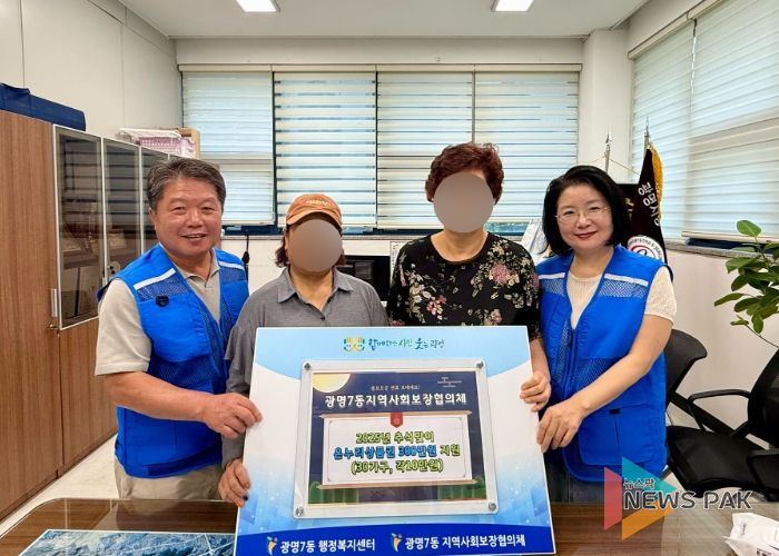 뉴스팍 배상미 기자 | 광명시 광명7동 지역사회보장협의체는 24일 민족 최대 명절인 추석을 앞두고 복지 사각지대에 놓인 저소득 취약계층 30가구에 온누리상품권 300만 원을 전달했다.