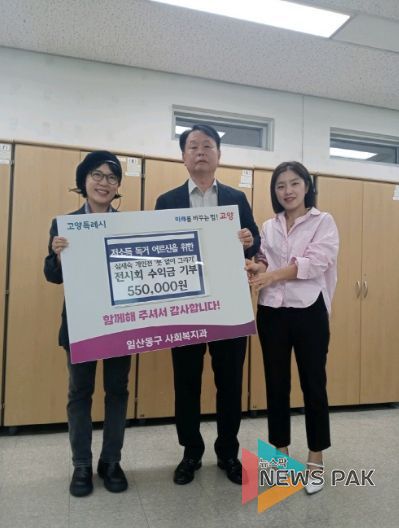박노선 일산동구청장은 “작가님의 뜻깊은 기부는 지역사회에 나눔 문화를 확산하는 계기가 될 것”이라며 “작가님과 관람객들의 따뜻한 마음으로 모인 성금을 도움이 필요한 이웃들에게 잘 전달하겠다”며 감사의 뜻을 전했다.