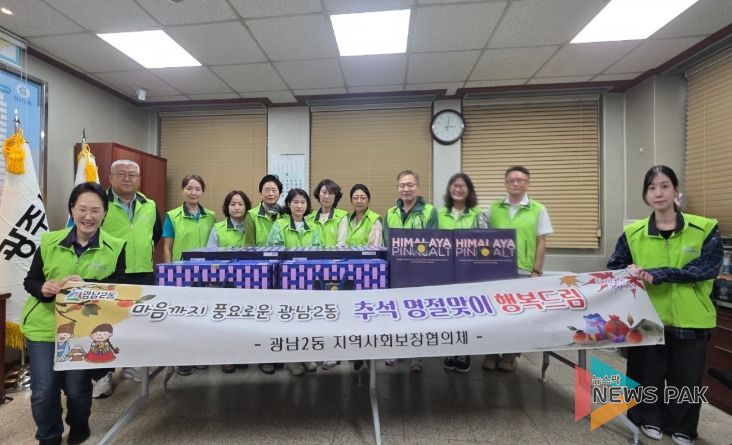 정경아·유숙 광남2동 지보체 공동위원장은 “작은 정성이지만 이웃들이 따뜻하고 풍요로운 명절을 보내는 데 도움이 되기를 바란다”며 “앞으로도 우리 지역의 어려운 이웃들을 위해 지속적인 관심과 지원을 아끼지 않겠다”고 말했다.