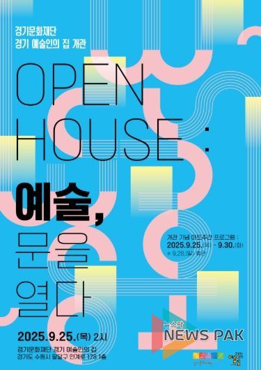 뉴스팍 배상미 기자 | 경기문화재단은 오는 9월 25일, 경기도 수원시 팔달구에 위치한 경기문화재단 인계동사무소 1층에 경기 예술인의 집을 개관 한다. 경기 예술인의 집은 예술인이 언제든 도움을 받고, 자유롭게 만나 소통하며 새로운 예술을 창출할 수 있는 복합 문화예술 거점 공간이다. 창작과 교류의 장으로서, 예술적 융합을 촉진하고 예술인의 성장을 지원하는 열린 공간으로 운영될 예정이다.