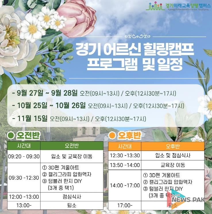 뉴스팍 배상미 기자 | 청소년과 영어교육 중심 기관이었던 경기미래교육양평캠퍼스가 전 세대를 아우르는 평생교육의 장으로 기능을 확대하기 위해 ‘경기 어르신 힐링캠프’를 운영한다.