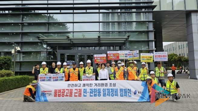 뉴스팍 배상미 기자 | 용인특례시 수지구는 24일 수지구청 광장에서 공무원과 경기도옥외광고협회 용인시지부 관계자 등 30여 명이 참석한 가운데 불법광고물 근절을 위한 민·관 합동 캠페인을 진행했다고 25일 밝혔다.