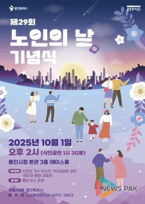 뉴스팍 배상미 기자 | 용인특례시는 10월 1일 시청 에이스홀에서 ‘노인의 날 기념식’을 개최한다고 25일 밝혔다.