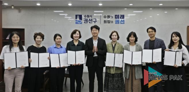 뉴스팍 배상미 기자 | 수원시 권선구는 지난 24일, 권선구청 구청장실에서 김종석 구청장을 비롯해 행정의 최일선에서 헌신·봉사하고 있는 통장 8명이 참석한 가운데 ‘2025년 하반기 통장자녀 장학금’전달식을 가졌다.