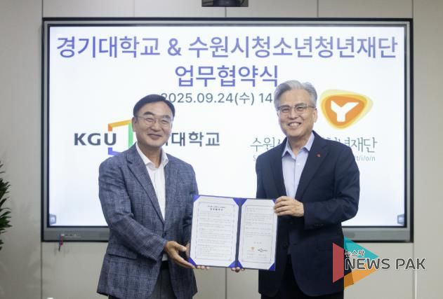 뉴스팍 배상미 기자 | 수원시청소년청년재단과 경기대학교는 9월 24일, 경기대학교 총장실에서 청소년과 청년의 상호 성장을 지원하기 위한 업무협약(MOU)을 체결했다.