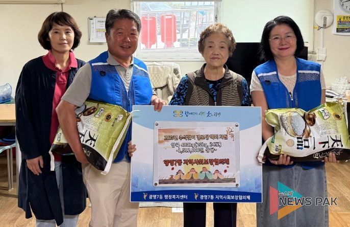 뉴스팍 배상미 기자 | 광명시 광명7동 지역사회보장협의체는 25일 추석을 맞아 관내 경로당 12개소에 백미 20kg 2포씩, 총 24포(152만 원 상당)를 전달했다.