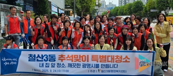 뉴스팍 배상미 기자 | 광명시 철산3동 행정복지센터는 지난 24일 추석을 앞두고 ‘대한민국 새단장 캠페인’의 일환으로 대청소를 실시했다.
