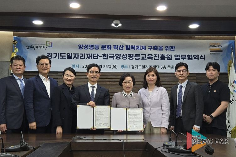 뉴스팍 배상미 기자 | 경기도일자리재단은 25일 수원시에 위치한 남부사업본부에서 한국양성평등교육진흥원과 ‘양성평등 문화 확산과 폭력예방 의식 제고’를 위한 업무협약을 체결했다.