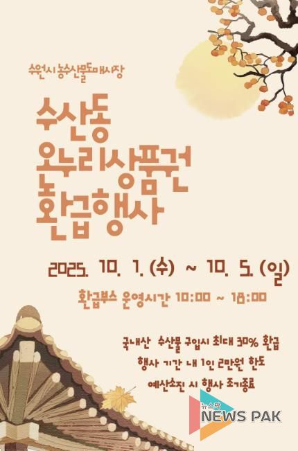 뉴스팍 배상미 기자 | 수원시농수산물도매시장 수산동이 추석을 앞두고 온누리상품권 환급 행사를 연다.