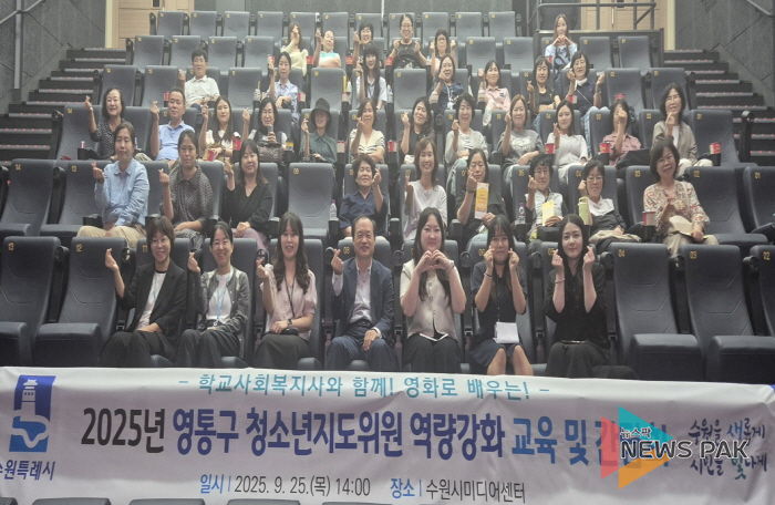 뉴스팍 배상미 기자 | 수원시 영통구는 지난 25일, 수원시미디어센터에서 2025년 청소년지도위원 역량강화 교육 및 간담회를 진행했다. 이번 행사에는 영통구 청소년지도위원, 학교사회복지사, 동 행정복지센터 청소년 담당자 등 50여명이 참석했다.