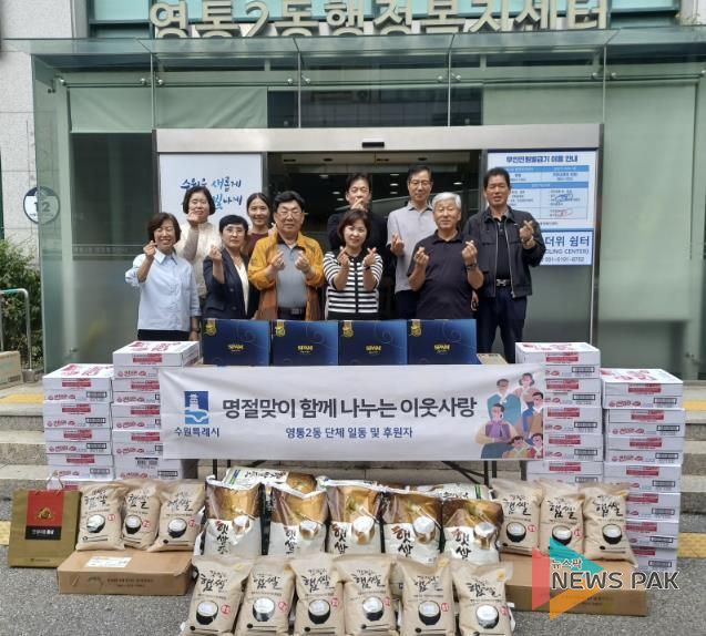 뉴스팍 배상미 기자 | 수원시 영통구 영통2동 단체장협의회와 행정복지센터는 지난 25일 추석 명절을 맞이해 각종 단체와 기관 등에서 후원한 다양한 물품(백미, 스팸선물세트, 온누리상품권, 라면 등)들을 관내 어려운 이웃들에게 전달하는 ‘이웃사랑 나눔 전달식’을 진행했다.