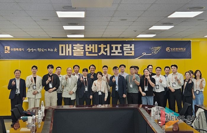 뉴스팍 배상미 기자 | 수원특례시는 26일 성균관대학교 삼성학술정보관에서 제7회 매홀벤처포럼을 개최했다.