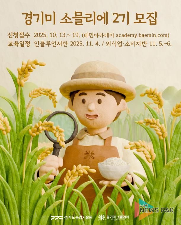 뉴스팍 배상미 기자 | 경기도농업기술원은 경기미 신품종의 인지도를 높이고 소비를 촉진하기 위해 ‘경기미 소믈리에 2기’ 교육생 72명을 모집한다.