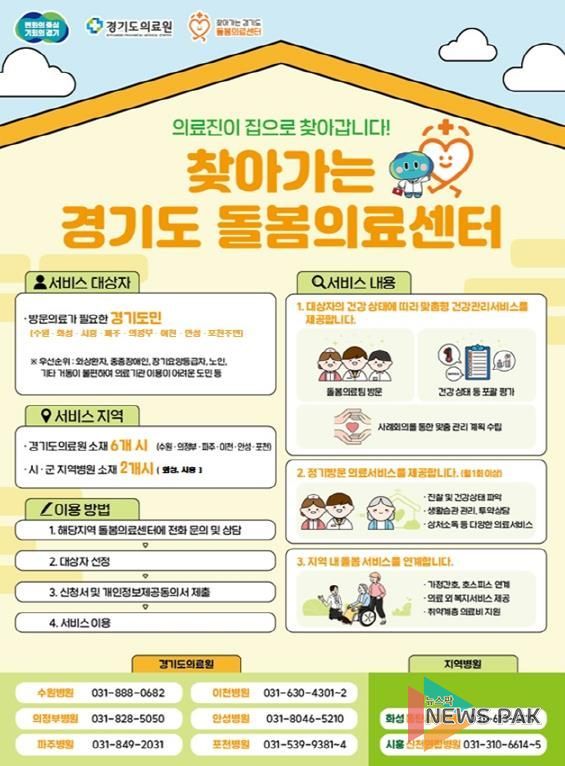 뉴스팍 배상미 기자 | 경기도가 9월 30일부터 10월 28일까지 경기도의료원 산하 5개 병원에서 ‘찾아가는 경기도 돌봄의료센터’ 비전 선포식을 열고, 도민이 집에서도 건강하게 지낼 수 있는 돌봄의료의 새로운 도약을 선언한다.