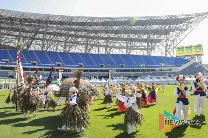 뉴스팍 배상미 기자 | 용인특례시는 제66회 한국민속예술제 청소년부 경연에 경기도 대표로 참가하는 용인시청소년연희단이 27일 용인미르스타디움의 ‘2025 대한민국 조아용 페스티벌’ 행사장에서 출정식을 겸한 전통 놀이 시연을 했다고 28일 밝혔다.