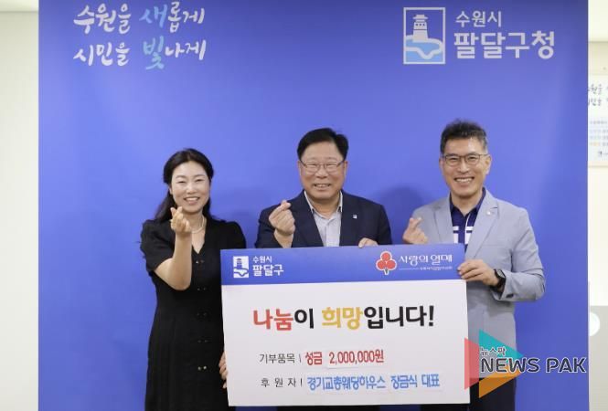 뉴스팍 배상미 기자 | 수원시 팔달구는 지난 26일, 경기교총웨딩하우스에서 기부하는 성금 200만원 전달식을 가졌다.