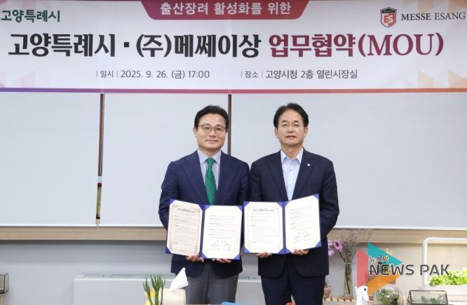 뉴스팍 배상미 기자 | 고양특례시는 국내 대표 전시 주최사 ㈜메쎄이상(대표 조원표)이 지자체와는 최초로 출산 장려 활성화 및 건강한 양육 문화 조성을 위해 손을 잡았다고 밝혔다.