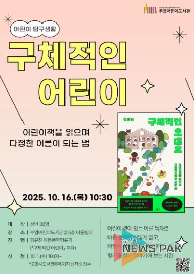 뉴스팍 배상미 기자 | 고양특례시 주엽어린이도서관은 오는 10월 16일과 11월 5일 성인을 대상으로 인문학 강연‘어린이 탐구생활’을 진행한다고 밝혔다.
